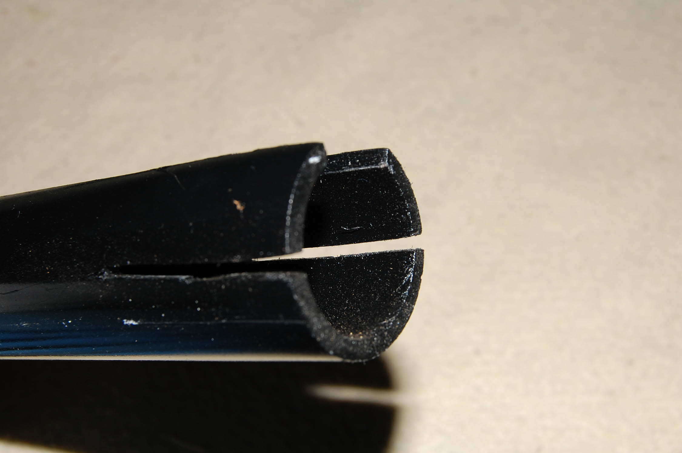 At the opposite end of the pipe from where you cut the slits, cut as shown below. Be sure that you are cutting at the back, top end of the pipe! You may not need to cut out the 3/8" by 1/8" section. (By the way, don't cut anything while it's on the gun - I just took the picture with the system on the gun because I didn't want to break everything back down again.)